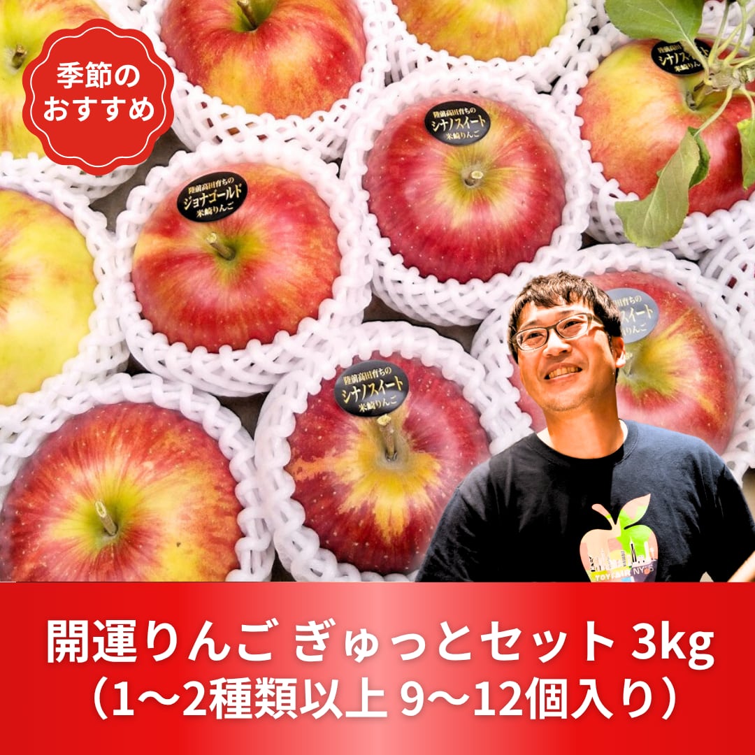 開運りんごミックス3㎏(2種類以上 9~12個入り)